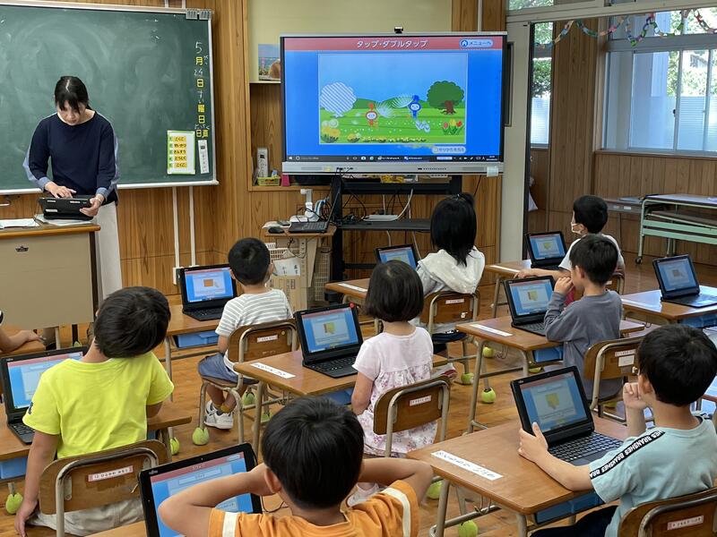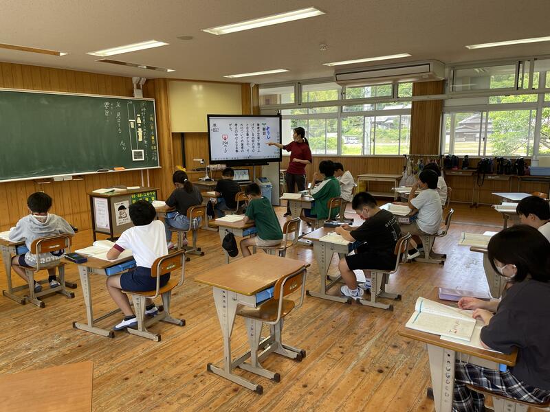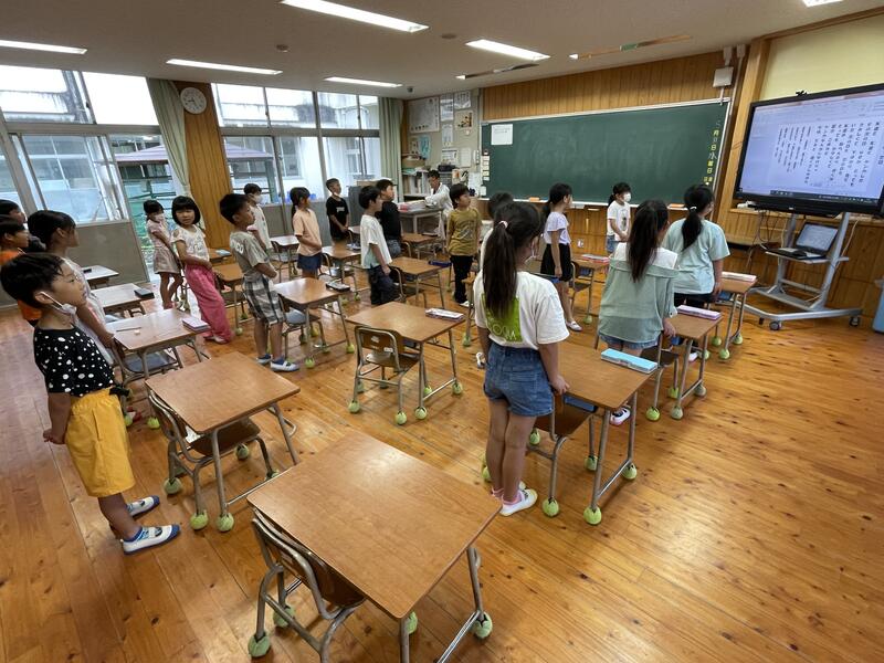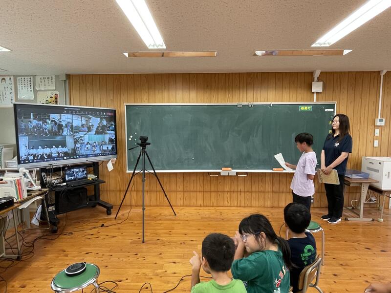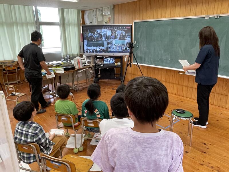 今日はむくのき学級とひばり学級の児童が南関町の他の小中学校の児童・生徒のみなさんとオンラインで交流を図りました。