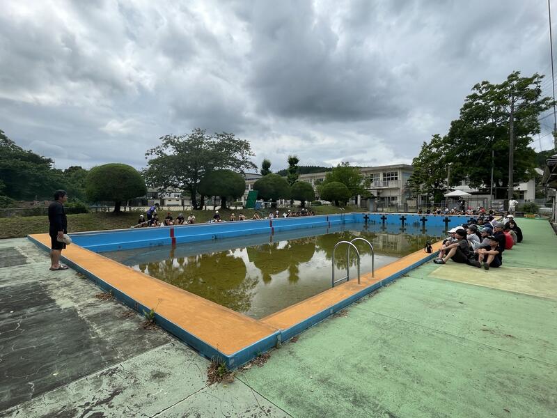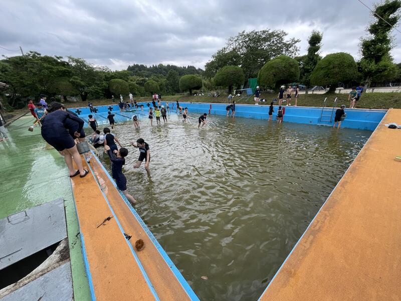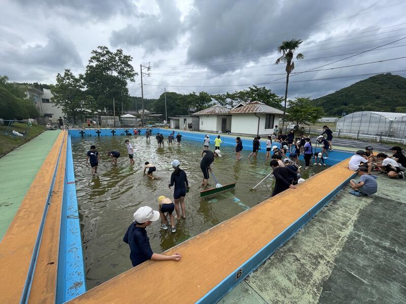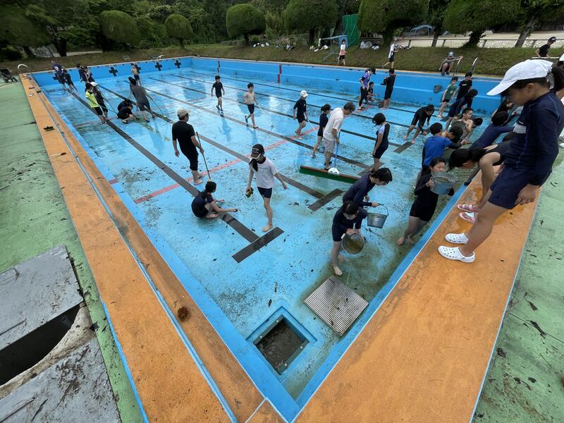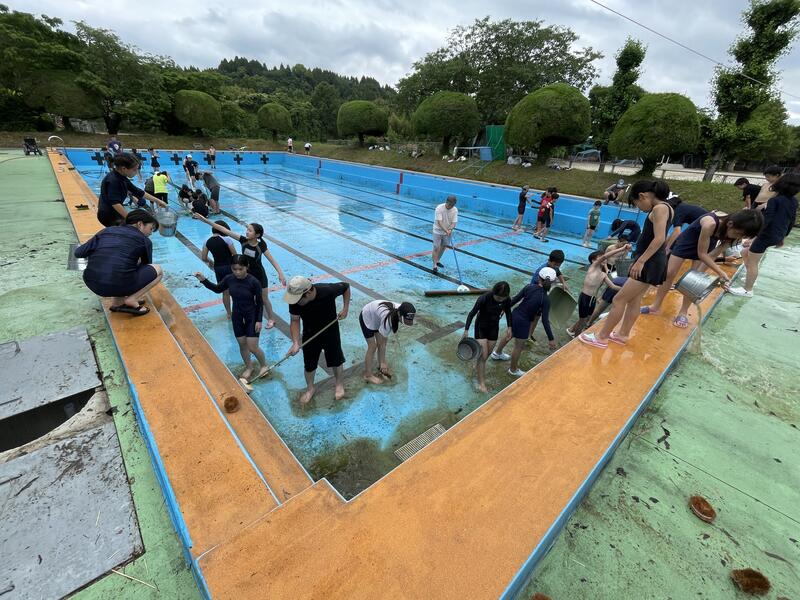 29日、5〜6時間目に4〜6年生によるプール掃除が行われました。