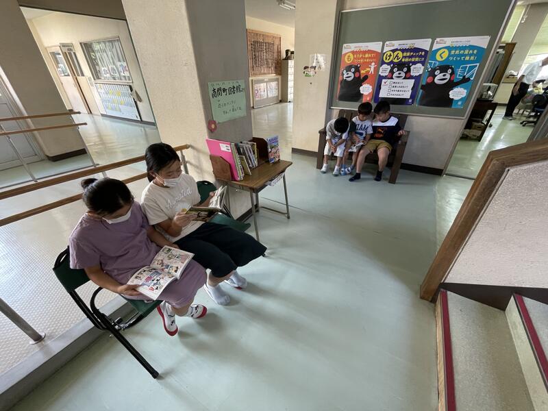 朝から廊下の読書コーナーで静かに読書を楽しむ姿も見られました。いいですね。