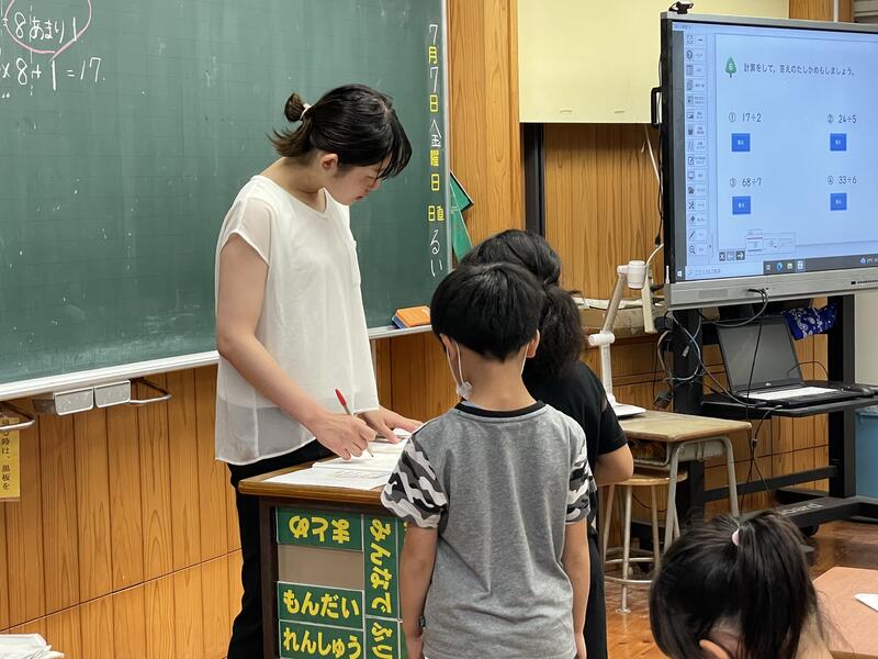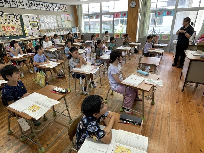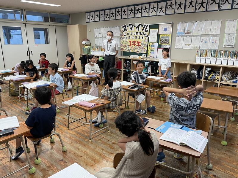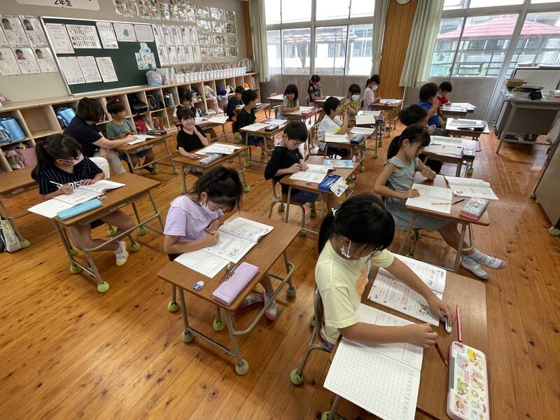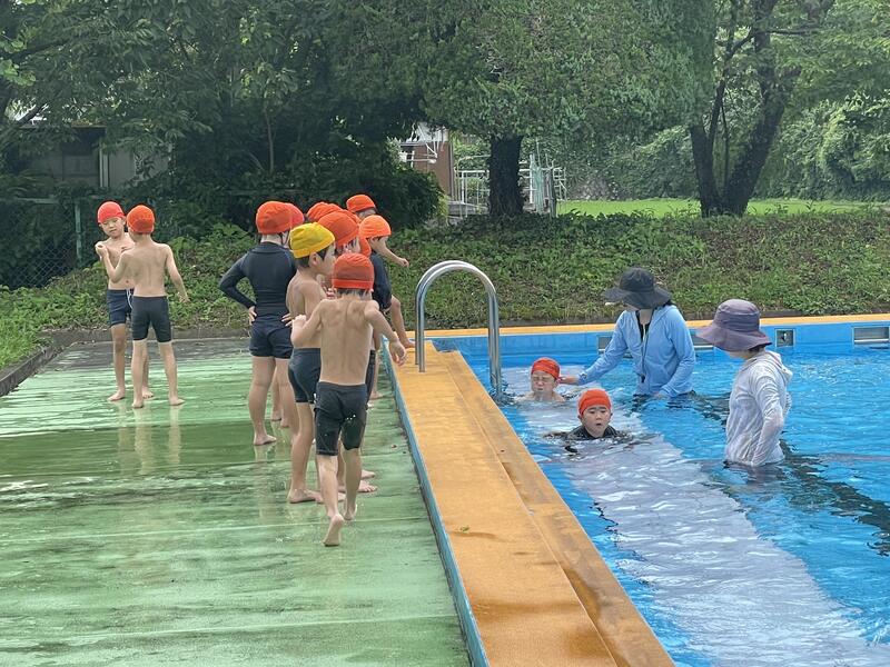 4年生はプールで水泳の授業が行われていましたが、雷が鳴ったため、途中で早めに授業を終わりました。ちょうど移動の時間だったため、写真が撮れませんでした。「もっと泳ぎたかったです」と言っていました。