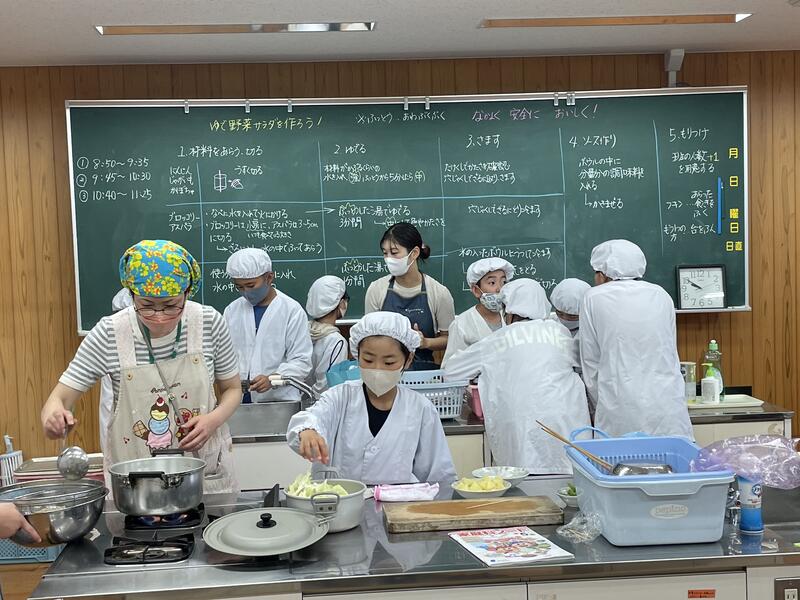 今日、むくのき学級とひばり学級のみんなは、学校の畑で育てた野菜を使って調理を楽しみました。