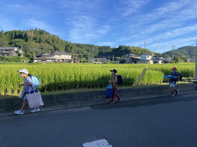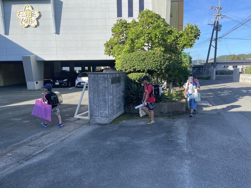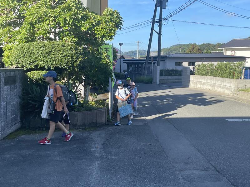 登校してくる低学年の子どもたちに「みんなの背丈と変わらないくらい伸びたね」と話しました。