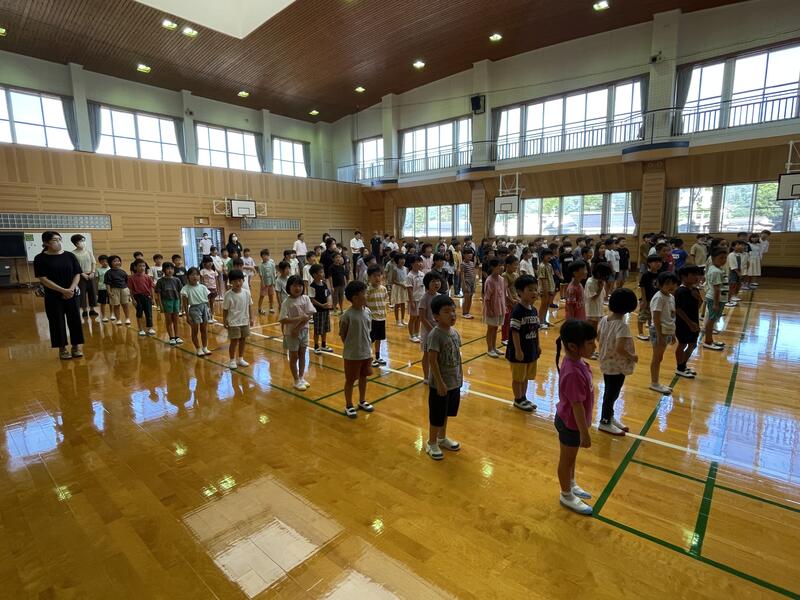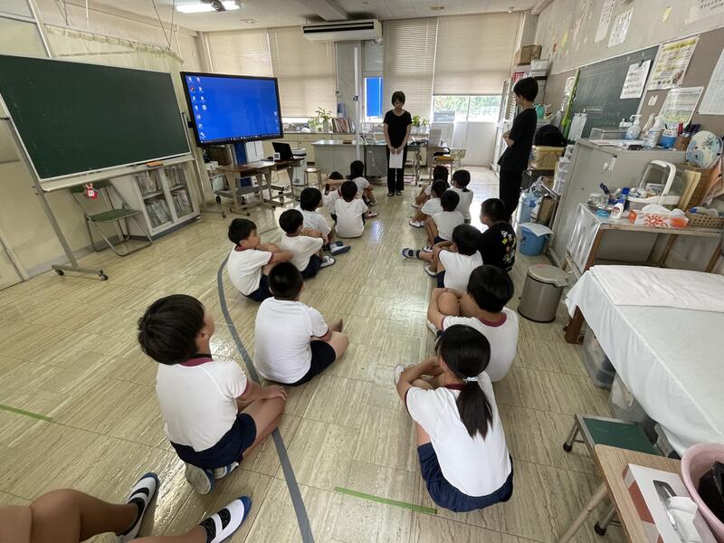 夏休み明け集会では、熱中症にならないよう、こまめな水分補給や無理な運動をひかえるなどの対策をしっかりと行いましょうと話しました。