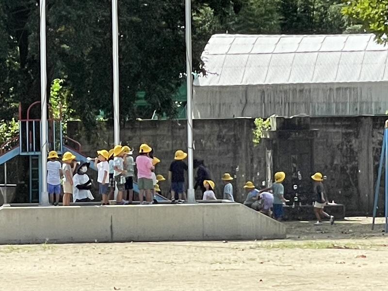 今日もひどい暑さです。生活科や体育は日陰のみで行いました。
