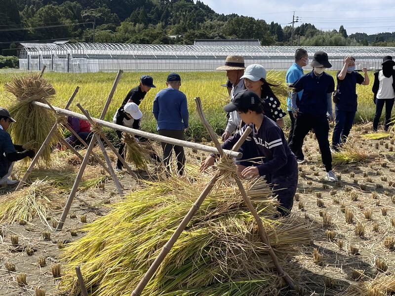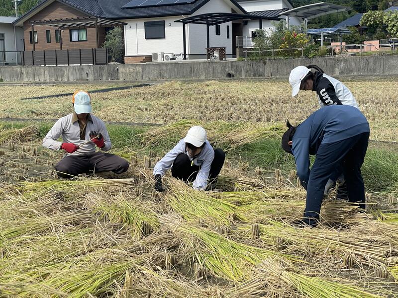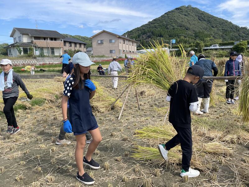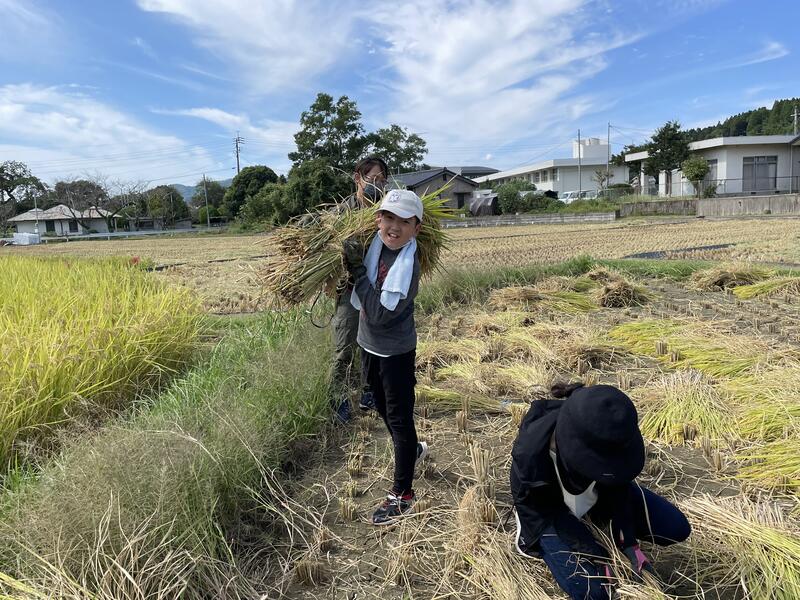 今日は、5年生が田んぼで脱穀の作業を行いました。