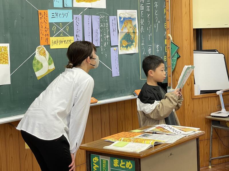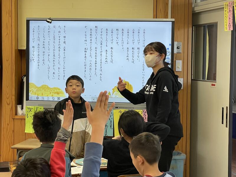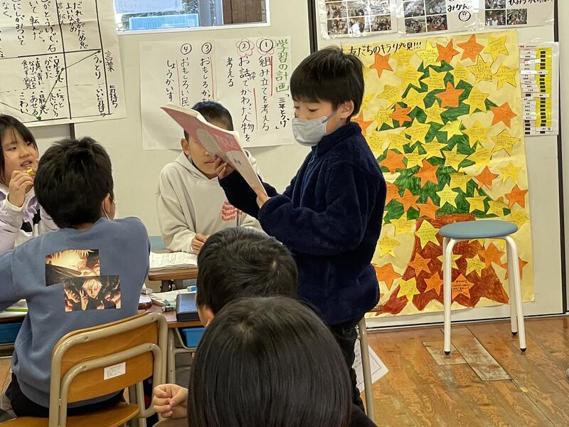 「三年とうげ」の学習で、一番面白いと思った場面を発表し合いました。