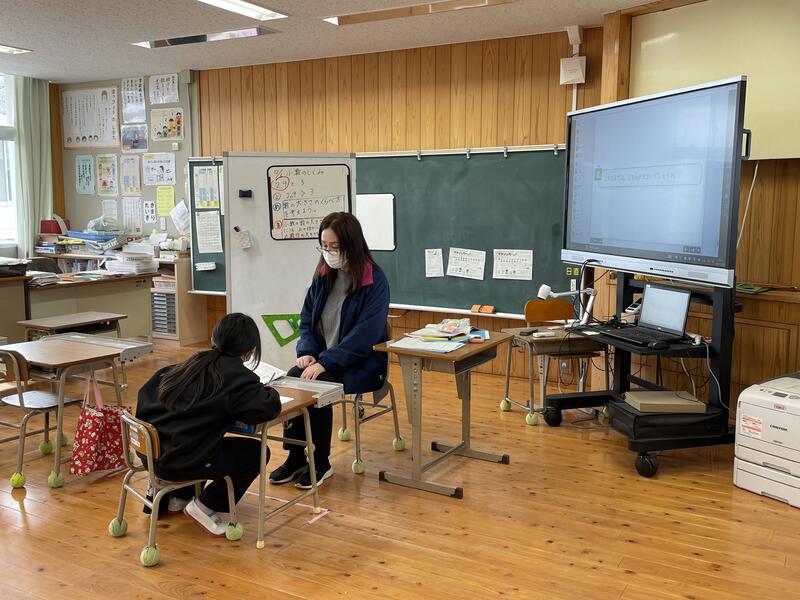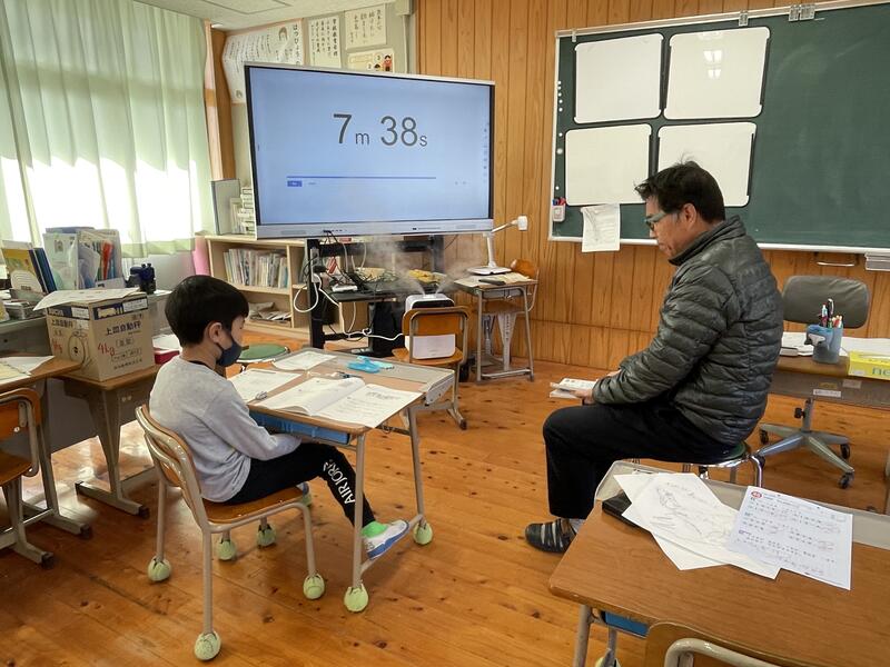 ただ、そのモニター画面がやや小さく見づらいので、何とかならないかと考えていたところ、事務の先生がHDMIのケーブルを使って、職員室内にある大型テレビにモニター画像が映るようにしてくれました。