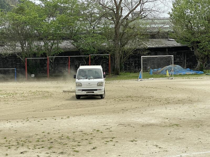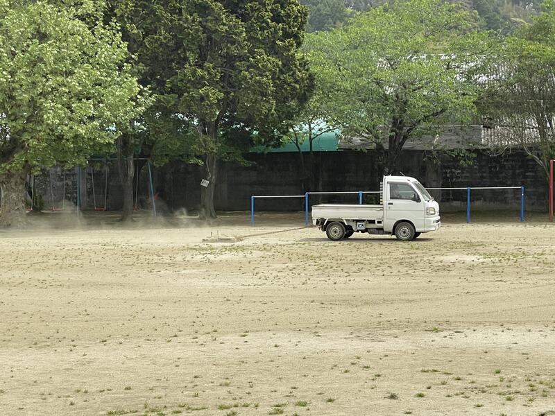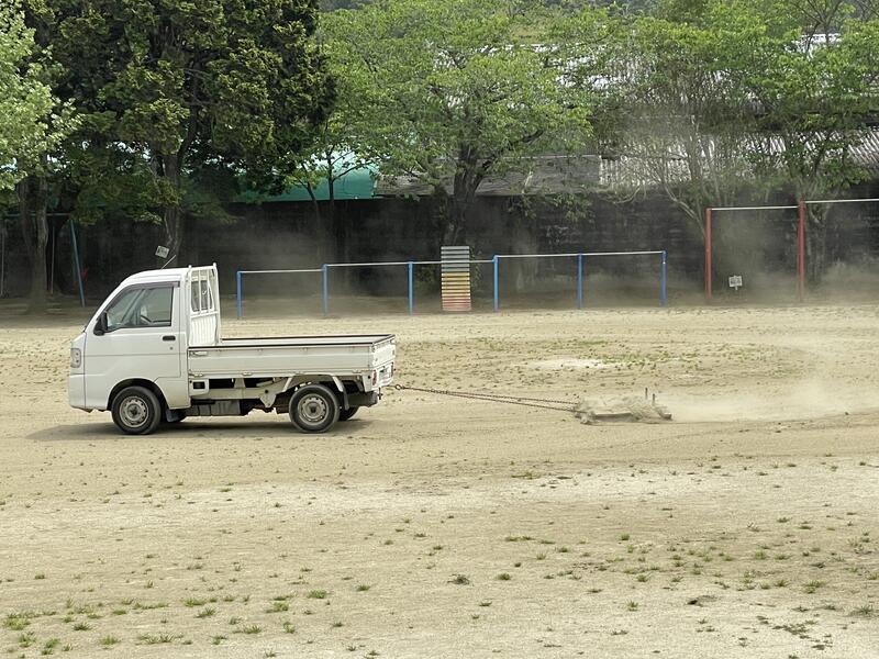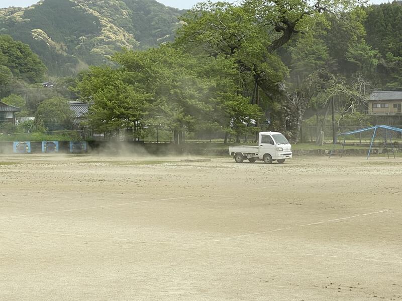 昨日、事務の先生が軽トラックを使ってグラウンドの整備をしてくれました。
