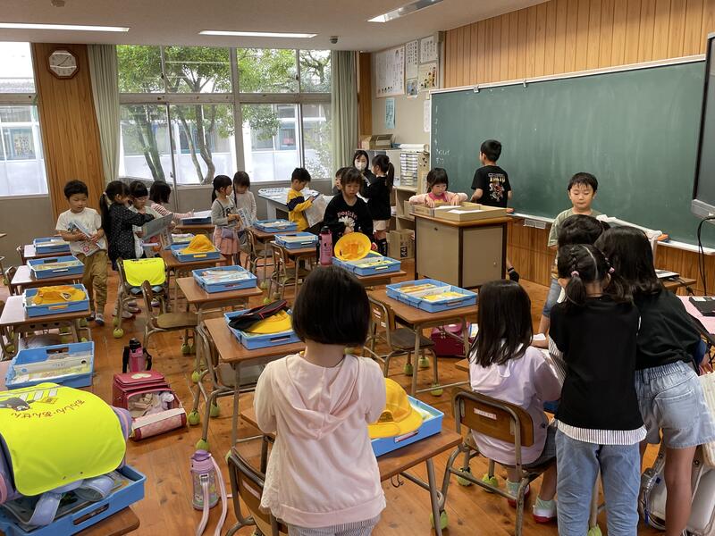 登校後の各クラスの様子と1年生が校長室見学に来てくれた際の様子をご紹介します。