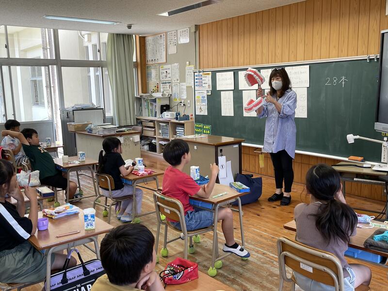 今日は1,2,3年生が歯磨き指導をしていただきました。