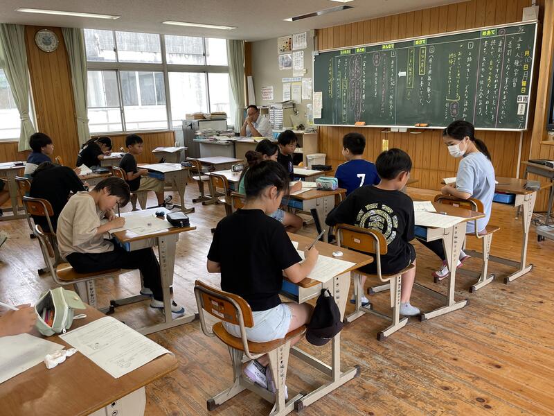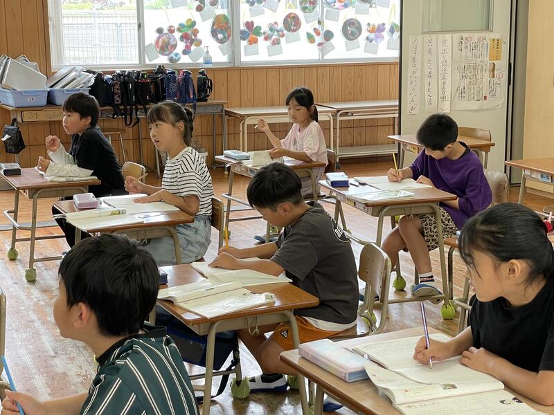 昨日は5年生の書道指導に元南関町教育長の大里先生においでいただきました。