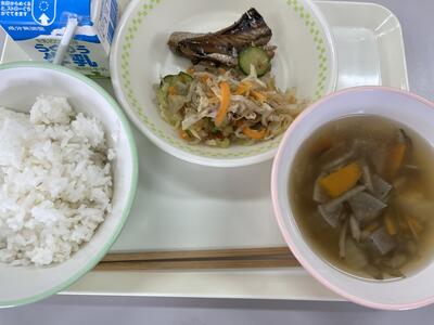 今日は、サバのカレー南蛮でした。サバには背中に流れるような縞模様があること、他のさかなに比べて歯が小さいのが特徴です。最初は「小さい歯」と書いて、サバと名付けられたといわれています。今はさかなへんに青とかきます。さばには主にからだをつくる働きがあります。また、サバは脂がのるとおいしくなります。その脂には血液をさらさらにしてくれる効果があります。