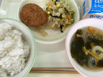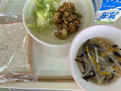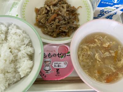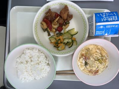 今日は、親子煮でした。たまごと鶏肉が入っていて、子どもの成長に必要なタンパク質がたっぷりとることができました。親子丼のようにごはんにかけていただきました。サラダにはコーンが入っていて、子どもの社会の脳の成長に必要なセロトニンの材料となるトリプトファンもとることができました。南関町の給食にはコーンが登場することが多く、ありがたいです。