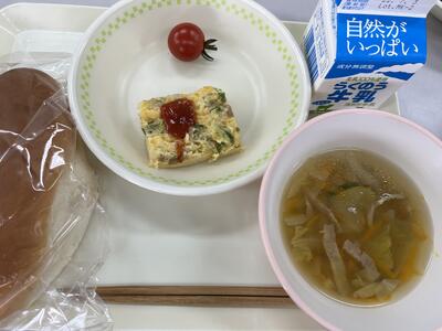 今日は、チーズが入ったオムレツでした。チーズは牛乳に乳酸菌とレンネットという牛乳を固めるものを入れてつくります。牛乳より長く保存することができ、牛乳と同じように体をつくるはたらきがあります。世界中には1000種類以上のチーズがあるそうです。機会があれば調べてみたいと思います。
