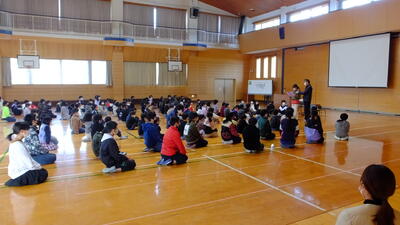 12月24日(金)冬休み前最後の日です。久しぶりに全校集会を体育館で行いました。(もちろん、密にならないように配慮しています。)