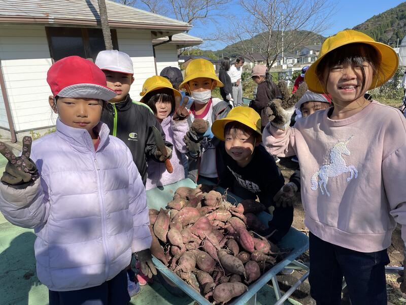 1,2年生の芋掘りでは、たくさんの大きな芋を収穫することができました。