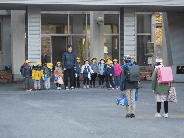 毎朝、総務委員会やなかよし委員会の子どもたちが玄関前であいさつ運動を行っています。12月くらいから、関東(せきひがし)や関外目(せきほかめ)の1・2年生も自主的にあいさつ運動に参加してくれていました。今日は、1年生があいさつ運動をしてくれました。気温は0度でしたが、心はぽかぽか、元気になりました。