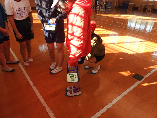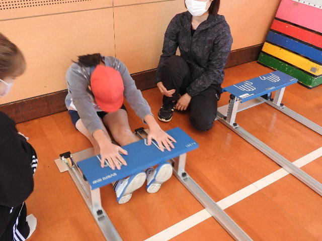 【5年生スポーツテスト】毎年スポーツ庁が公表する体力テストの小学校の結果は、全国すべての5年生の結果をまとめたものです。今年は、新型コロナウィルスの影響で、スポーツテストは全国の学校で中止となりましたので、結果は公表されませんが、南関町では、A-lifeさんのご支援で、5年生のスポーツテストを実施することができました。画像は正座体前屈と握力測定の場面です。