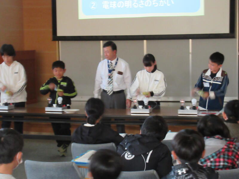 終業式終了後、6年生が考えた「10年後の南関町」について、全校児童の前で発表してもらいました。