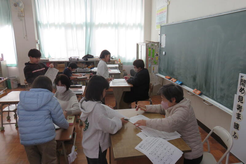 低学年には、チャレンジタイムといって、国語や算数の基礎の勉強に、丸付けに来ていただく丸付けボランティアがあります。今日来ていただいました。児童は、たくさんの丸をもらって大変ごきげんです。丸付け先生方も、「子どもたちは元気いっぱおですね!子どもたちからパワーをもらいました。こちらこそありがとう」と言ってくださいました。