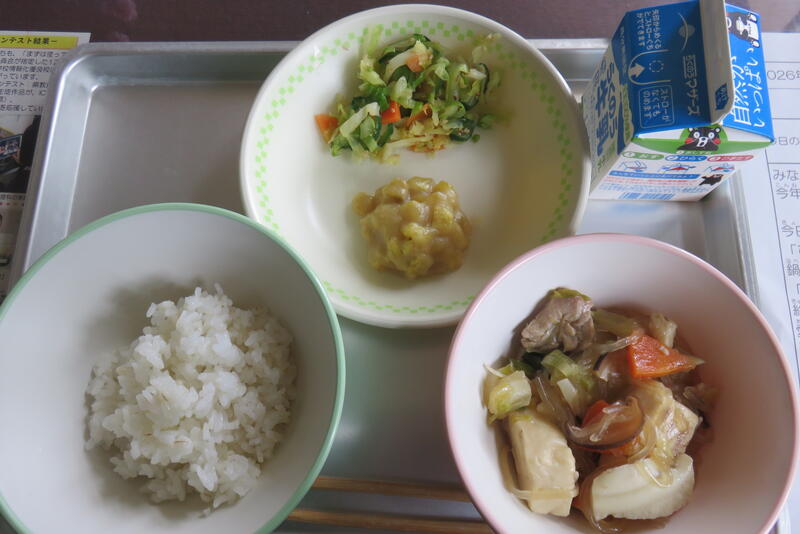 受験生のみなさん、家族に受験生がいる人たち、さまざまな受験にかかわる人たちが、体調を整えて頑張り、よい知らせが届くことを願って、おいしい給食を今日もいただきました。