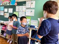 翌日19日(火)には、日頃の感謝の気持ちを伝えるために、福永さんを招待して枝豆パーティーを開きました。枝豆の収穫と試食の後、子どもたちが考えた劇をしたり(大成功でした!)、お礼のお手紙を読んだりして、福永さんに感謝の気持ちを伝えました。福永さんにとても喜んでいただき、たくさんほめていただき、満足そうな様子の子どもたちでした。枝豆パーティーの振り返りで、「今日食べた枝豆は、今までで一番あまくておいしくて、皮までたべたくなりました。」「福永さんにおんがえしのつもりでしたパーティーで、喜んでもらえたからよかった。」と話していた子どもたち。学習を終えて、また一段と成長したように思います。
