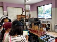 丸美屋の福永さんに教えていただいて、大豆の収穫をしました。昔の道具めぐりぼうと唐箕を使いました。めぐりぼうで大豆のさやを叩き、さやから大豆を出し、唐箕でさやと大豆を分けます。初めて使う道具に四苦八苦していた子供たちですが、福永さんにわかりやすくコツを教えていただき、何度もやっているうちに、最後には上手に使えるようになっていました。きれいな大豆が取れて喜んでいた子どもたちです。福永さん、ありがとうございました!