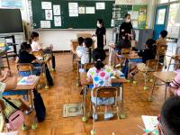 獣医さんの話では、子どもたちは心をグッと掴まれました。動物の赤ちゃんがどうやって産まれるかを知り、どの動物の赤ちゃんかを考えるクイズでは、大人の姿と赤ちゃんの姿で顔の色が全く違うことに驚いていました。質問タイムでは、たくさん質問する姿勢があり感心しました。スタッフの方から「南関第二小の子どもたちは素晴らしいですね」と言っていただきました。