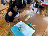 また、後日、お箸のマナーについて教えていただきました。子どもたちは、「嫌い箸」「自分に合ったお箸の長さ」「お箸の正しい持ち方」を知り、食材、食事を作ってくれた人への感謝の心や一緒に食事を食べている人への思いやりの気持ちを持ち、今日学んだことをこれからに生かしていこうと感想に書いていました。