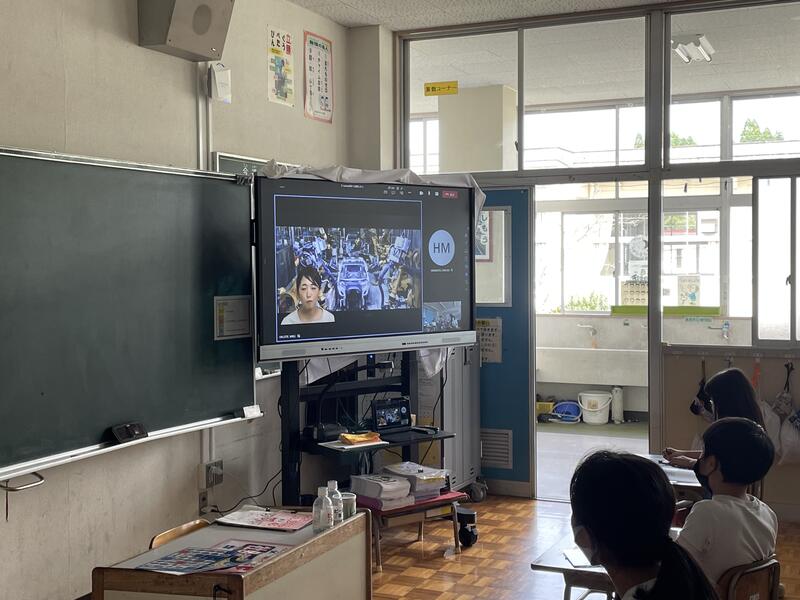 5年生は、社会科で自動車生産の学習をしています。自動車の組立工場は、近隣には立地せず、なかなか見学に行くことができません。そこで、社会科の教科書に掲載されている日産自動車九州工場に依頼して、オンライン工場見学をさせていただきました。オンラインでの見学でしたので、映像や音声の乱れ等がありました。しかし、ガイドの方に案内されながら、実際に工場見学をしているかのような映像構成でした。しかも、オンラインでしか見られない工場の内部も見せていただき、ありがたかったです。また、事前にメールで送っていた質問にも答えていただきました。オンラインでの工場見学もなかなかいいなぁと思いました。今後の学習に生かしたいと思います。