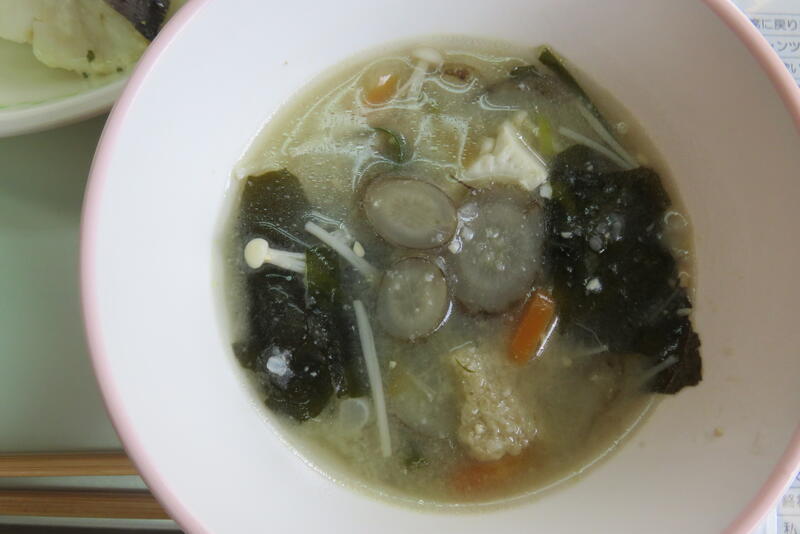 今日の呉汁には、南関あげ、大根、ネギなど南関町で作られた食材が使ってあります。寒い日に食べて、体が温まりました。