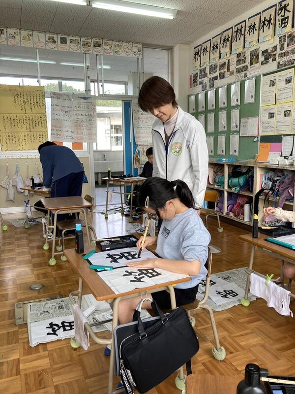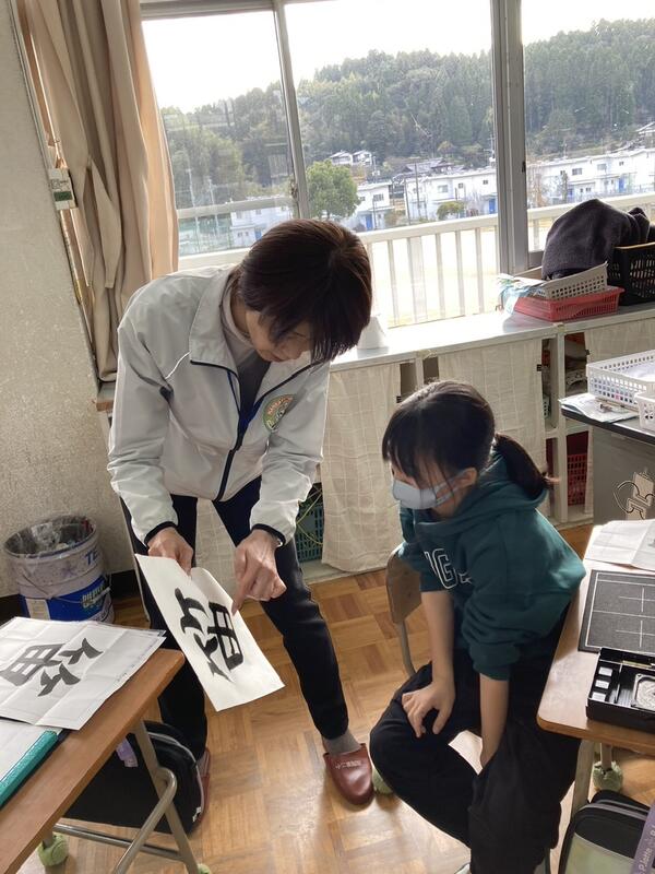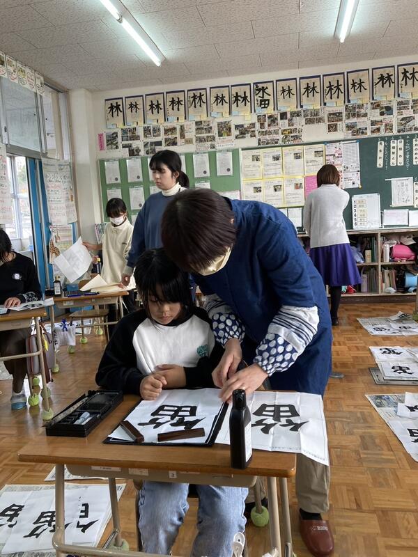 4年生の習字の時間に習字のスペシャルティーチャーに来ていただきました。