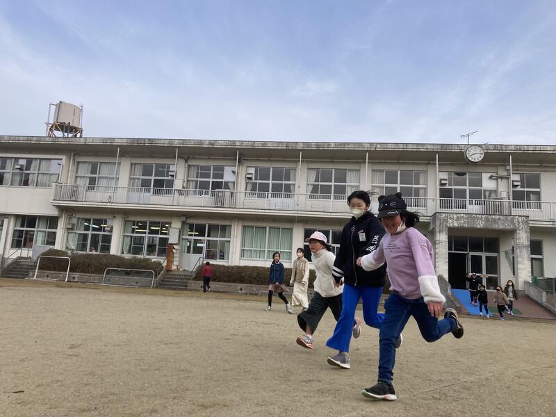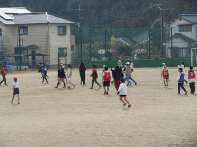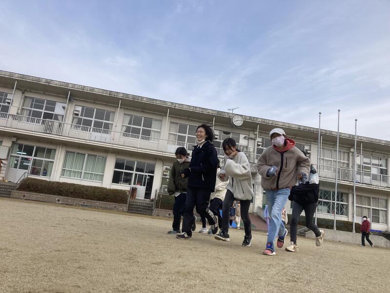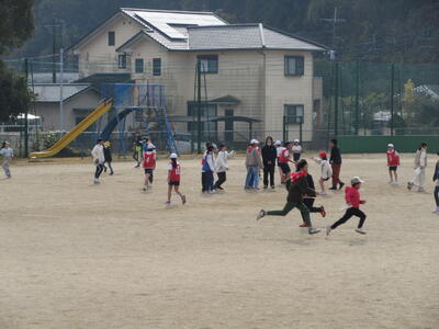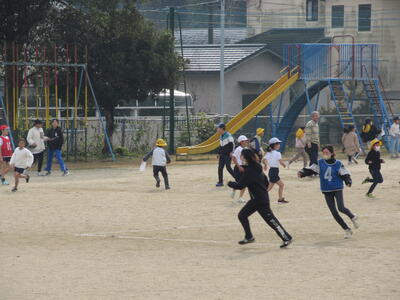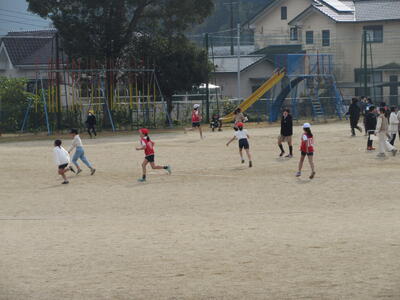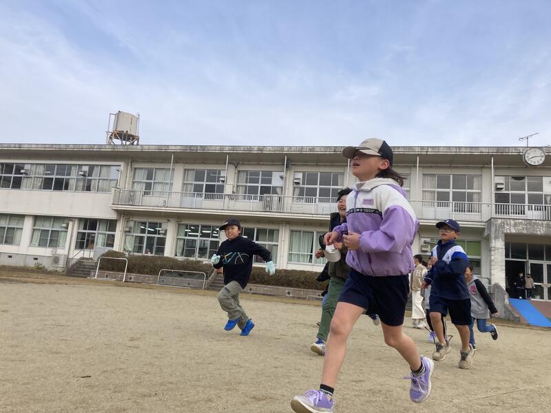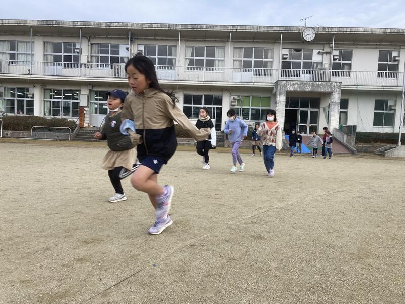 「RUN RUN おにごっこ」を行い、全校児童が一生懸命楽しみながら走りました。