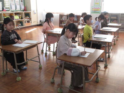 とてもよい姿勢で漢字の練習をしたり、新しく習った漢字をみんなでなぞり書きをしました。