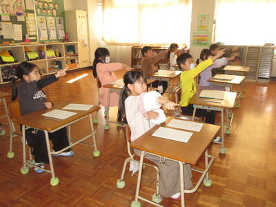 1月9日(火)、1年生は冬休みの出来事について発表し、発表に対してみんなが感想を返したり、自分のことをみんなに伝えたりしていました。手のあげ方もとてもいいですね。