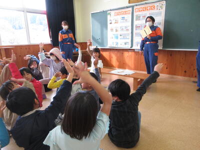 保健部門では、体を動かすことの大切さを伝えたり、実際にくまモン体操をして体をほぐしたりすることができました。