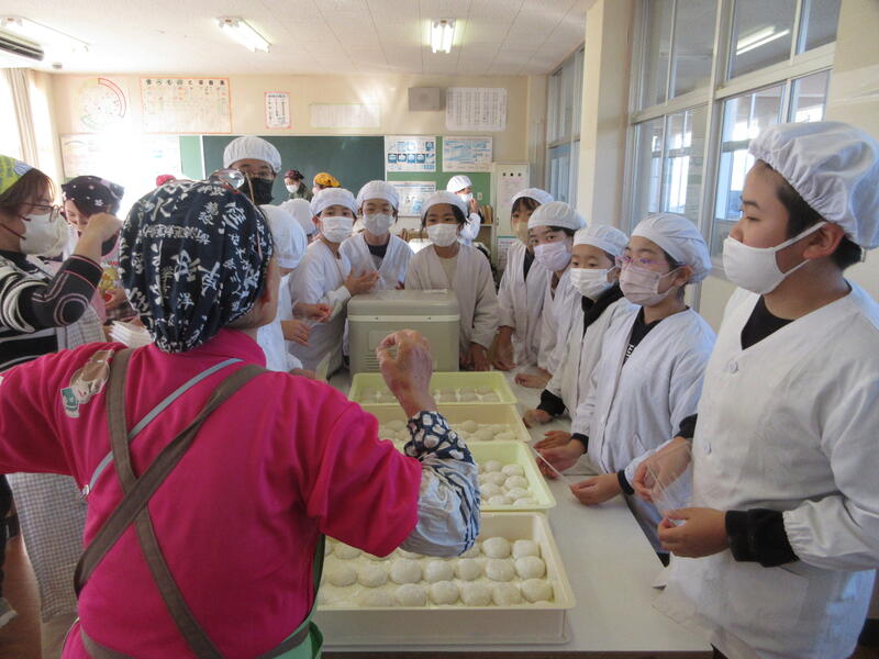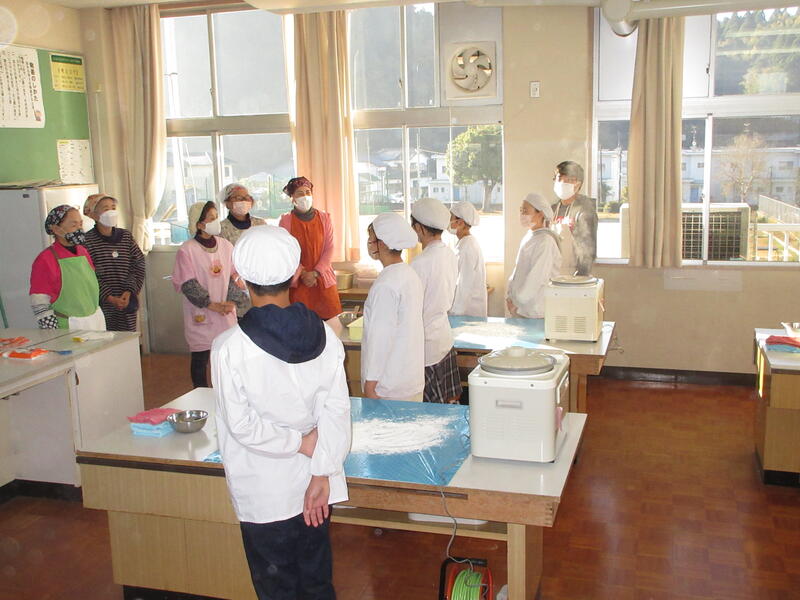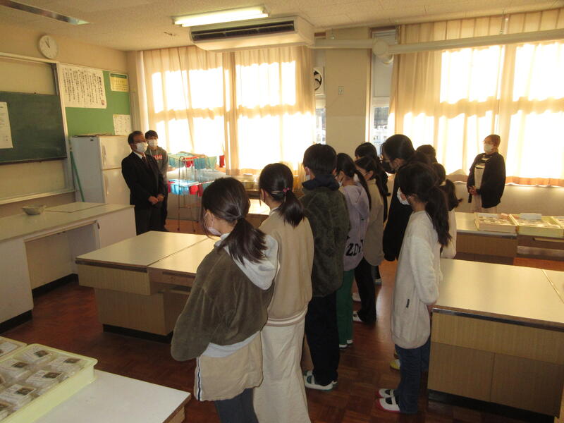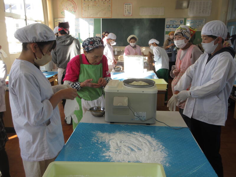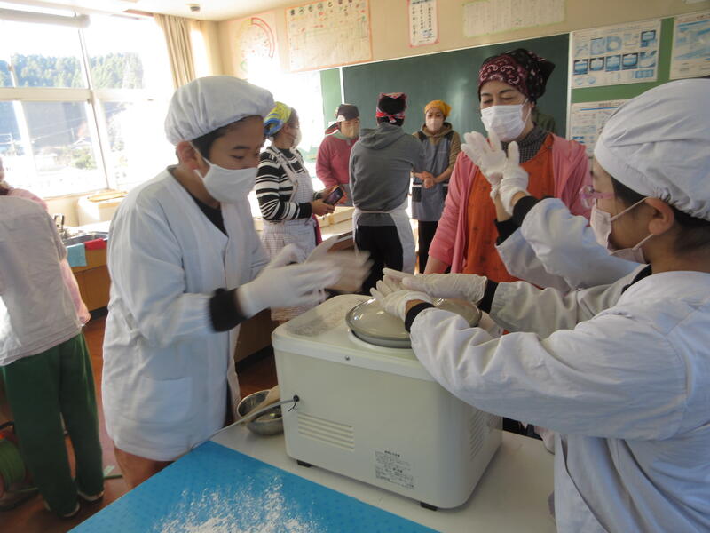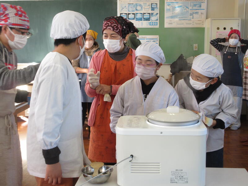 11月28日(火)、地元の食品会社である丸美屋さんのご支援により、大豆の唐箕を体験した後に、家庭科室で豆腐作り体験を行いました。
