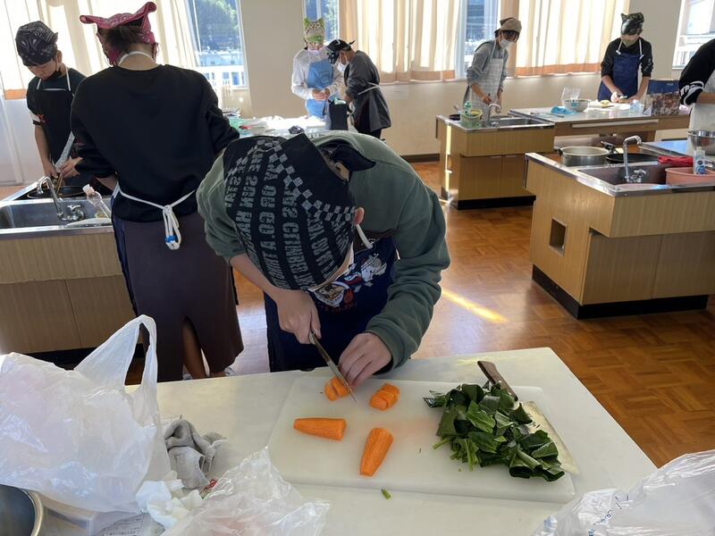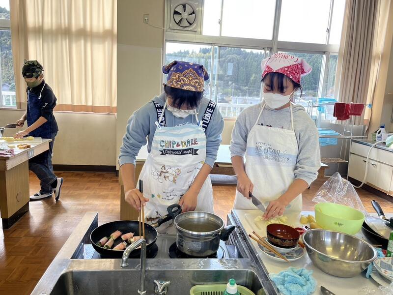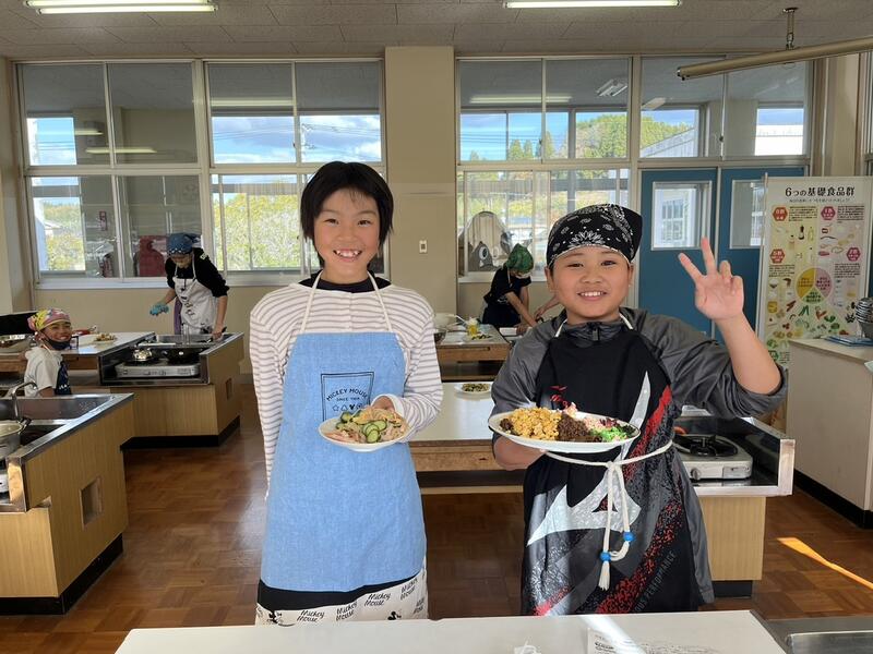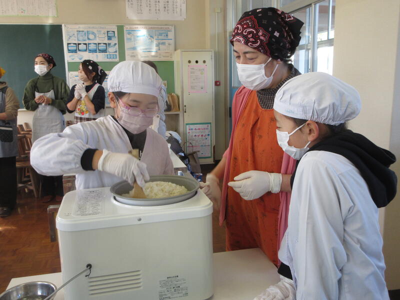 地域学校協働活動ぼボランティアで5年生の保護者の方々にも指導をしていただき、調理実習を行うことができました。
