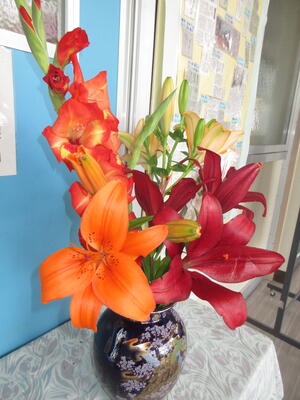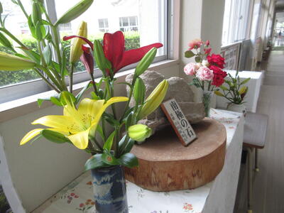 南関第二小学校の地域の釘崎 眞貴子さんから、きれいなお花を頂きました、学校が潤っています。