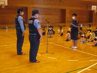 6月2日(木)に、校外からの不審者侵入に備えて、避難訓練を行いました。南関町教育委員会の平嶋様に不審者役をしていただきました。玉名警察署南関駐在所から、岩本様と、村上様においでいただき、全校児童にお話をしていただきました。