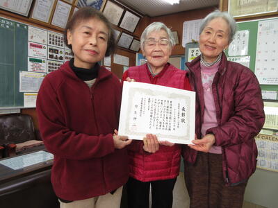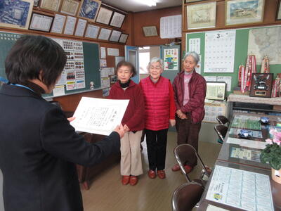 からたち朗読の会の皆さんに玉名教育事務所から読み聞かせをしていただいていることに対して表彰状をいただきました。