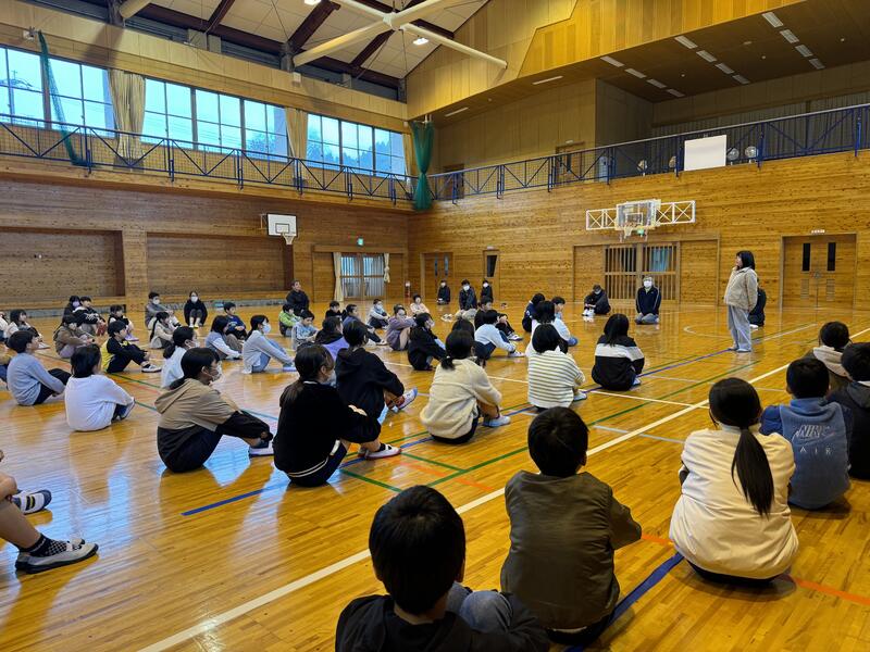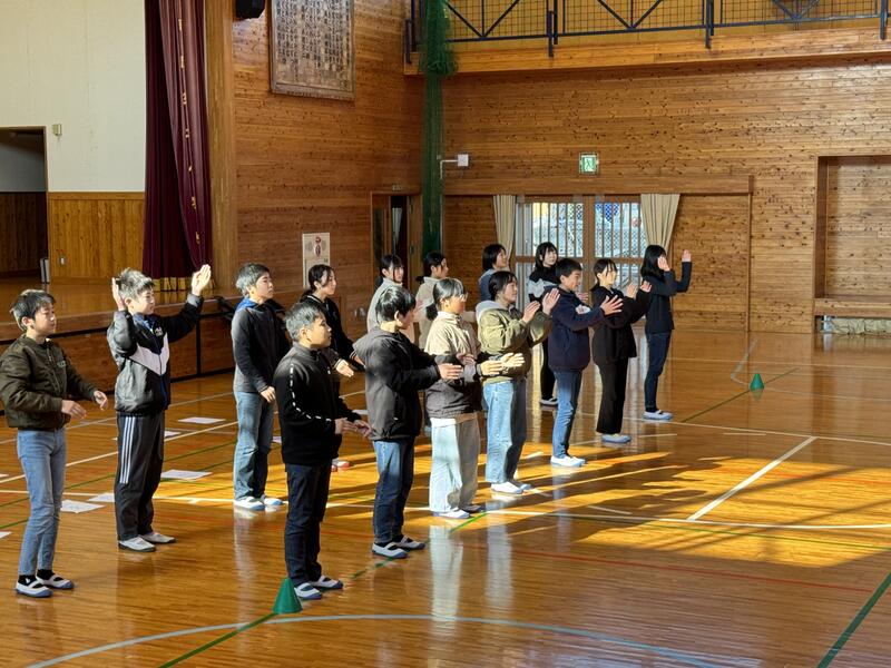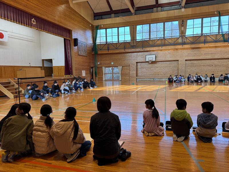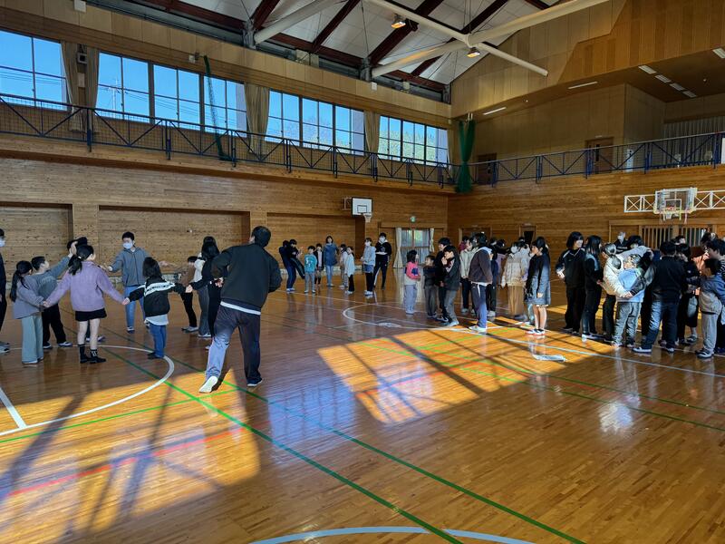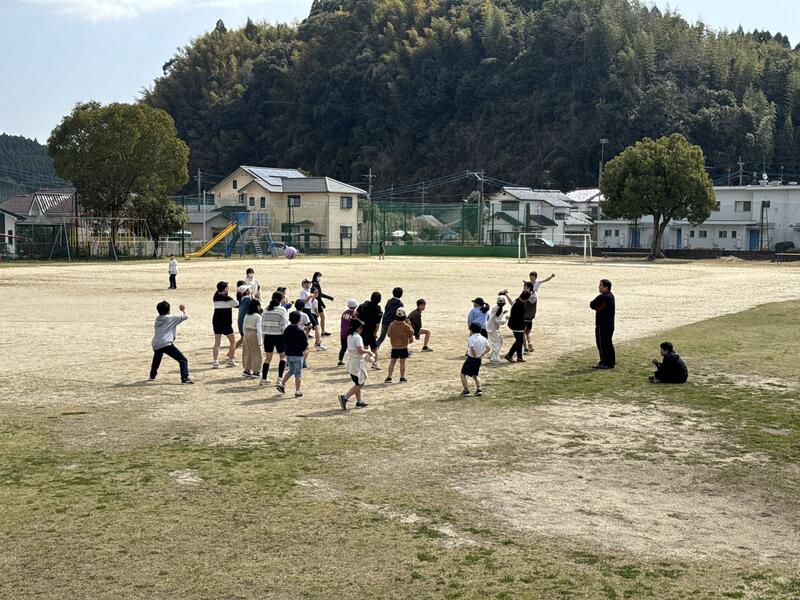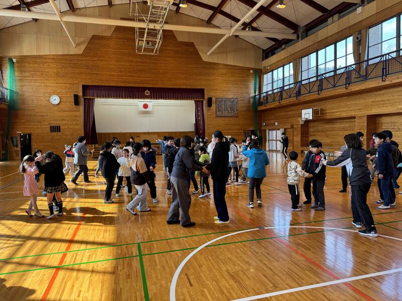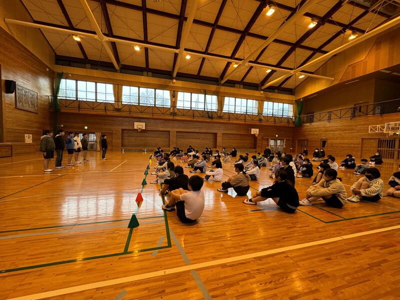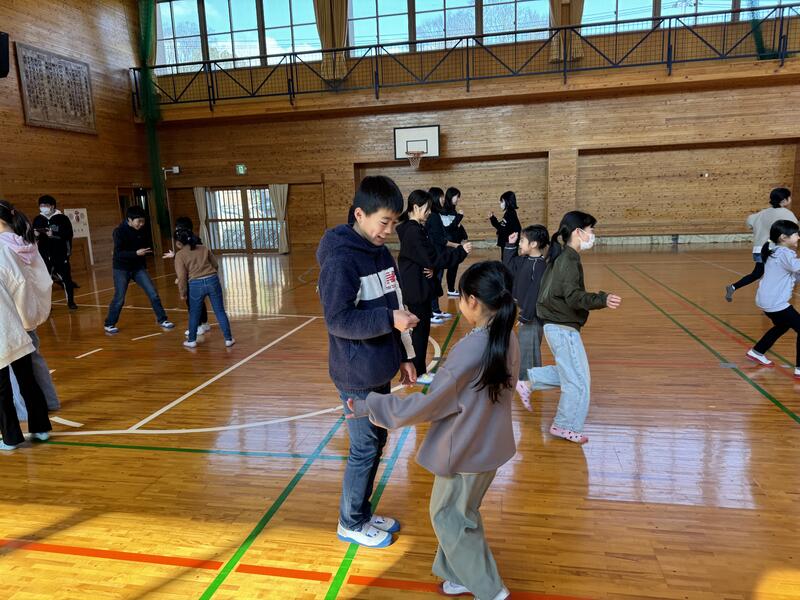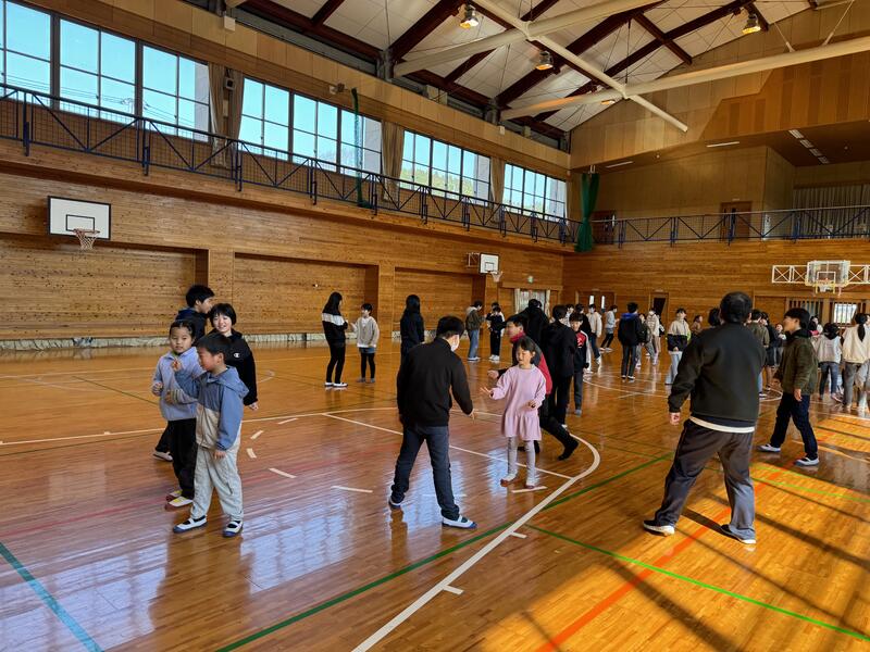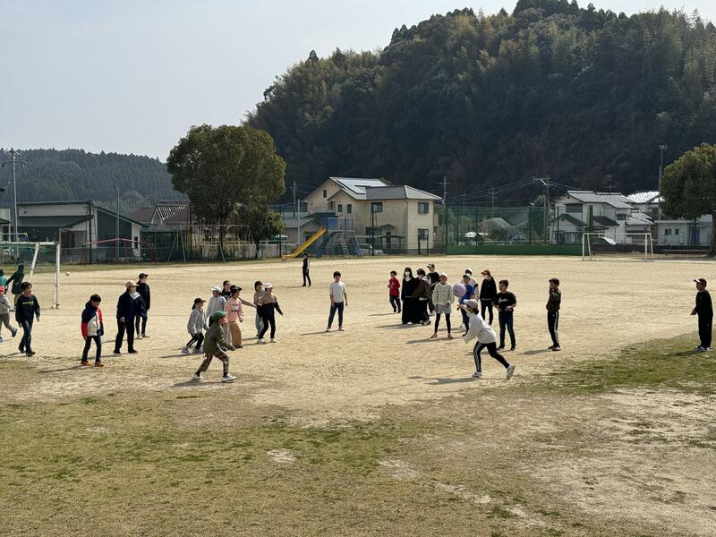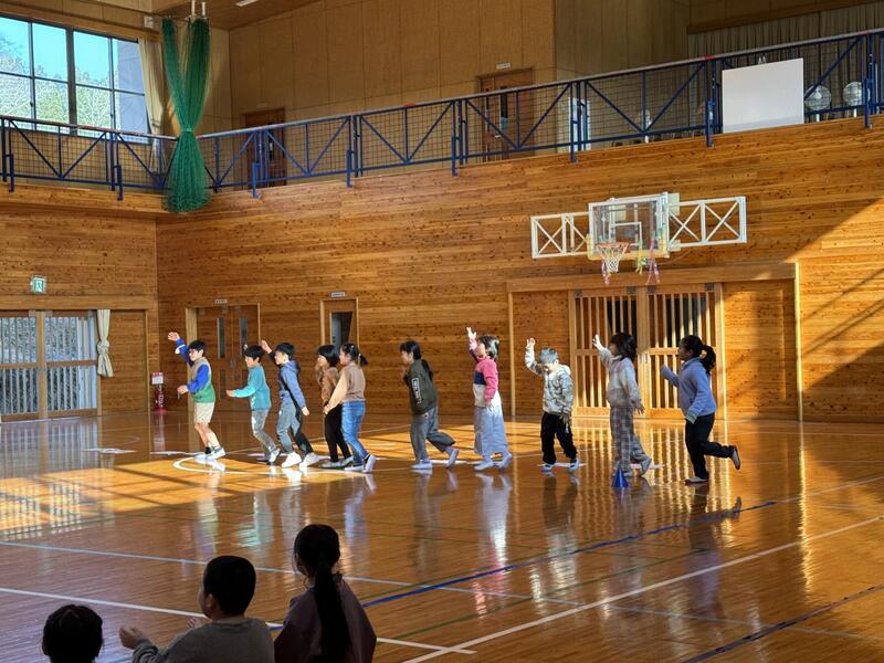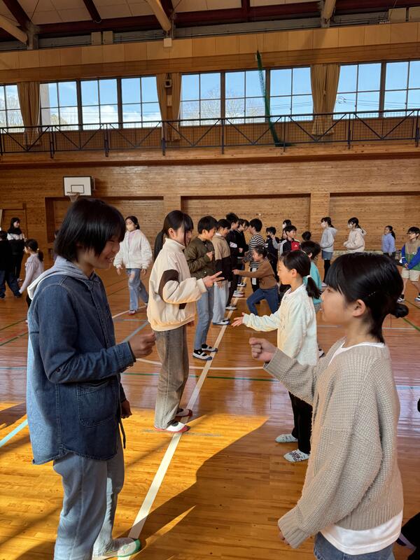 6年生を送る会の後に、みんなでレクレーションをしました。樫原先生がレクレーションリーダーをつとめてくれました。