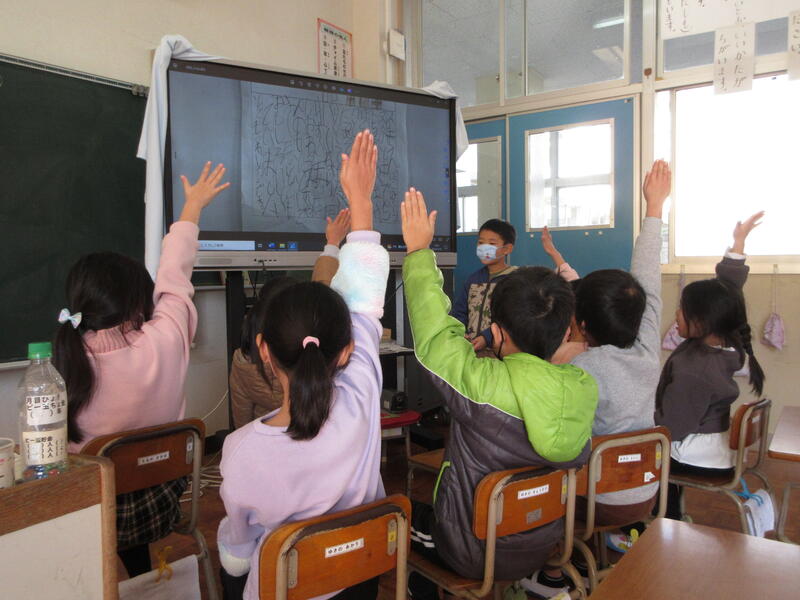 1月9日(火)、1年生は冬休みの出来事について発表し、発表に対してみんなが感想を返したり、自分のことをみんなに伝えたりしていました。手のあげ方もとてもいいですね。