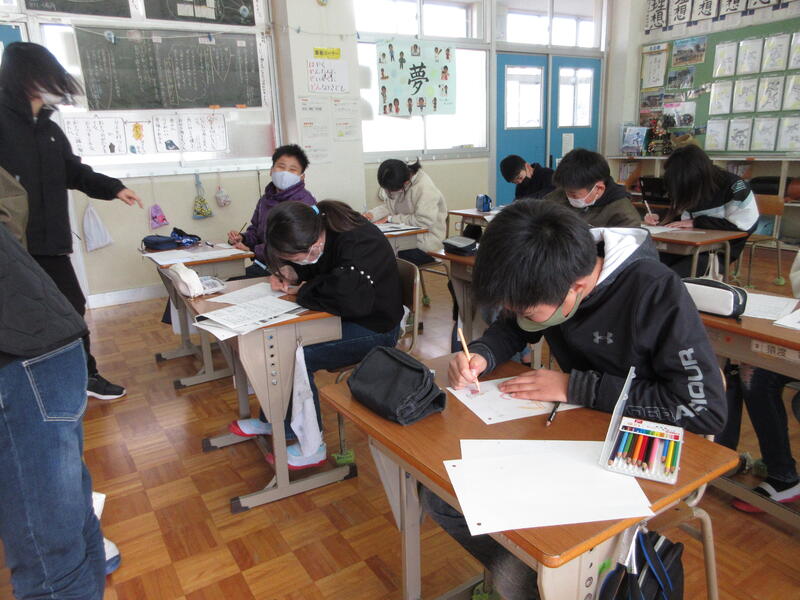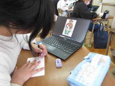 5年生は年賀状を作成し、今年の気持ちを新たにしていました。