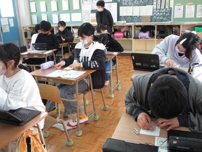 2年生は、自分のテスト終了後、タブレットを使い自分が必要と考える学習を進めました。