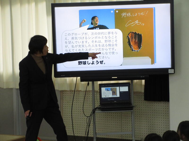 1月9日(火)の集会で、大谷翔平選手からのグローブ寄贈について披露しました。