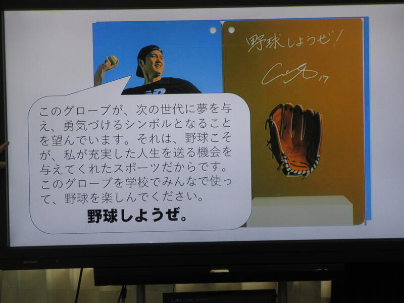 大谷翔平選手から各学校に大谷翔平選手からのメッセージとともにグローブが寄贈されました。