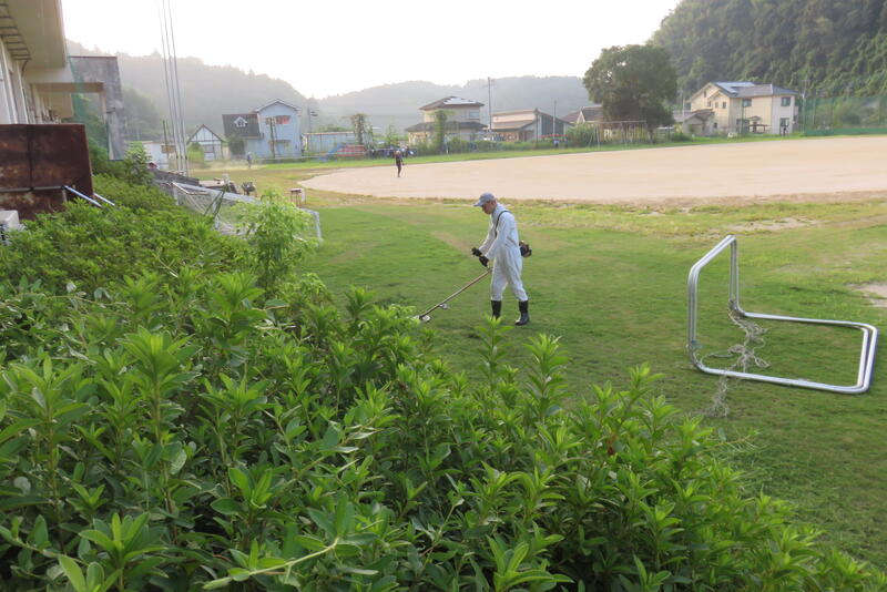 朝の6時半から、児童、保護者、地域の方々が集まり、ラジオ体操を行い、その後、美化作業を行いました。
