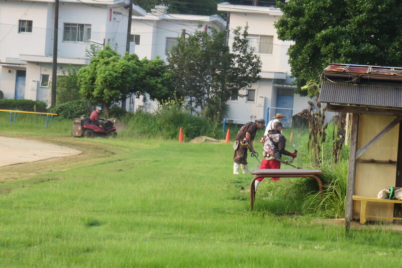 その後、夏の間に伸び放題の学校敷地内の草刈り、草取りをしました。保護者の方や地域の学校応援団の方にもきて助けていただきました。子どもたちも草取りや、草運びを時間いっぱいがんばってくれました。