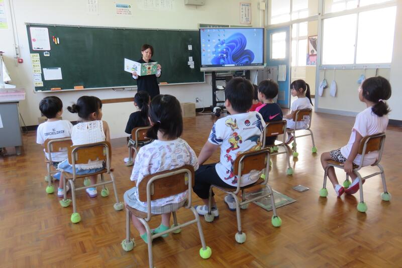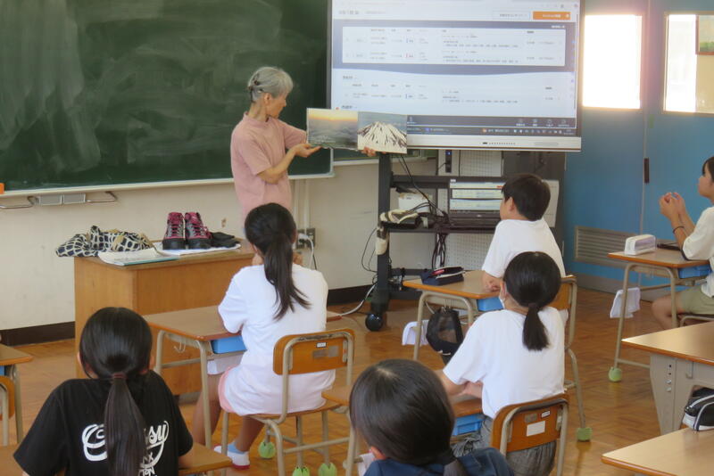 9月の読み聞かせは、今日9月1日でした。低学年は、保護者さん、高学年は、からたちの会から来ていただきました。低学年は、お母さんが来られたので大喜びで、聞き入っていました。高学年は、やなせたかしさんの本の紹介と、登山の本の紹介で、登山靴も一緒に紹介していただきました。6年生は、3年生の時に、大津山に登ったことがあるそうです。どこかの機会に、読み聞かせの方と山で出会うことがあるかもしれませんね。